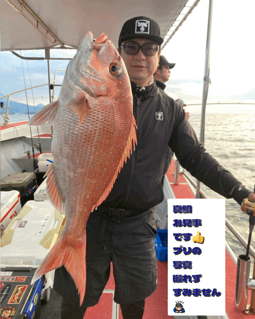 タイラバロッドで11キロクラスのブリはお見事でした👍船グルグル回してしまい周りの船さんご迷惑おかけしました🙇🏻♂️