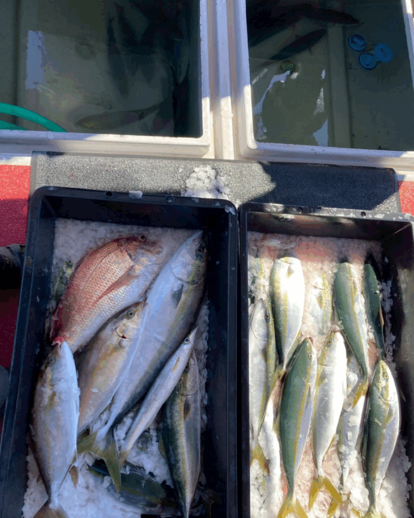 5050は締め氷サービス中〜🫡できるだけ新鮮に魚を持って帰って頂けるように締めた後は冷えっ冷えの海水氷で十分に冷やしてお持ち帰りして頂いております❗️魚を並べての撮影はこの時期ひかえておりますのでご了承下さい🙇🏻♂️※水温が下がり保冷できると判断できれば終了いたします❗️