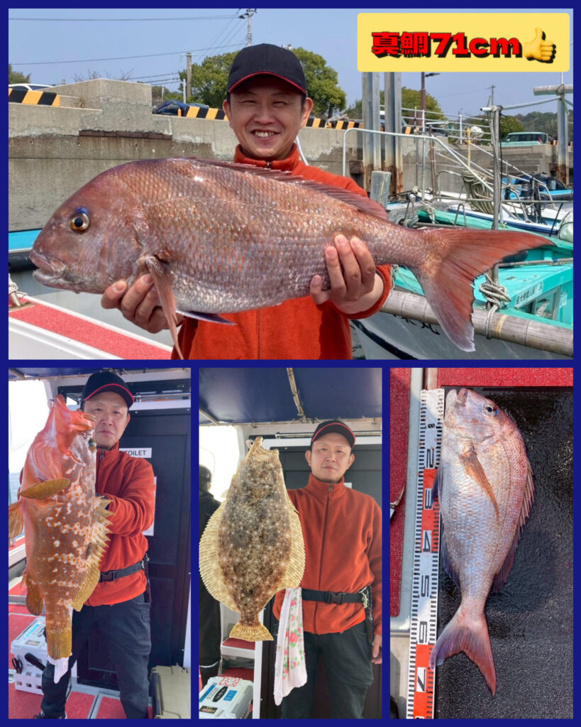 型のいいアコウも上がり、ゲストの真鯛も70UPといいサイズ✨